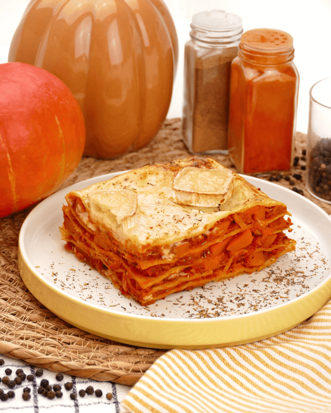 Ces lasagnes au potimarron et au chèvre allient la douceur des courges de saison, parfumées aux herbes de Provence et au paprika, associées au fondant du chèvre et aux oignons rouges caramélisés : la promesse d’un repas généreux, convivial et plein de caractère.