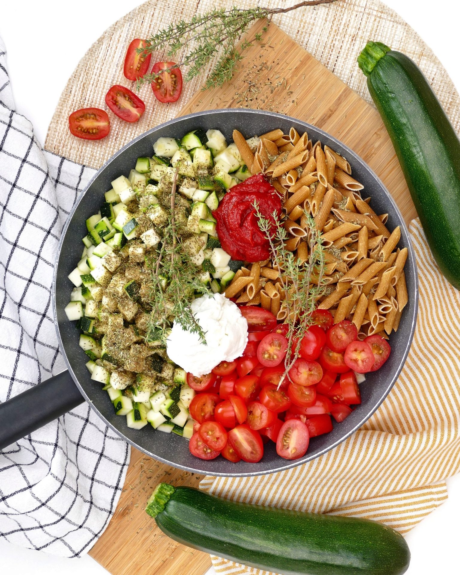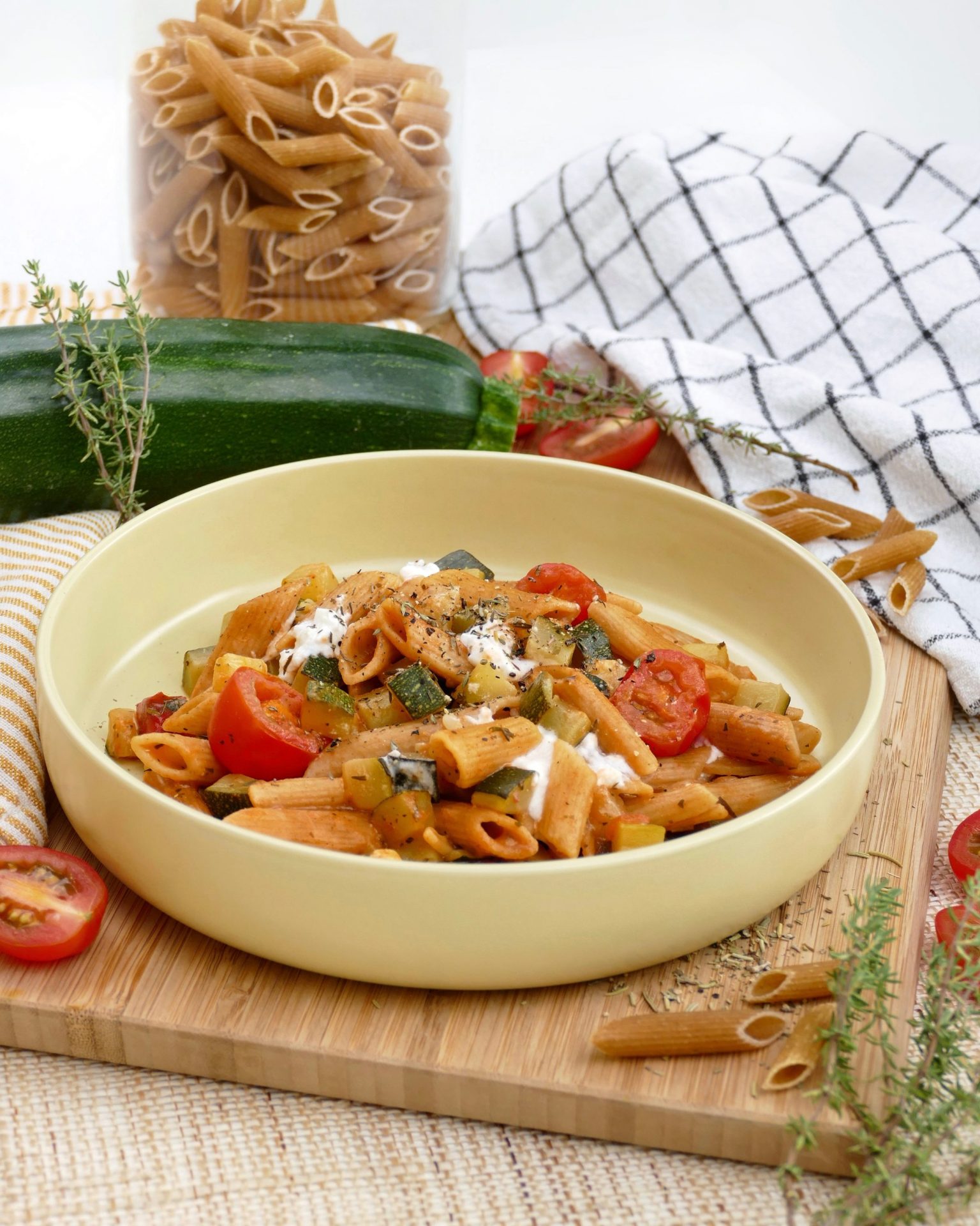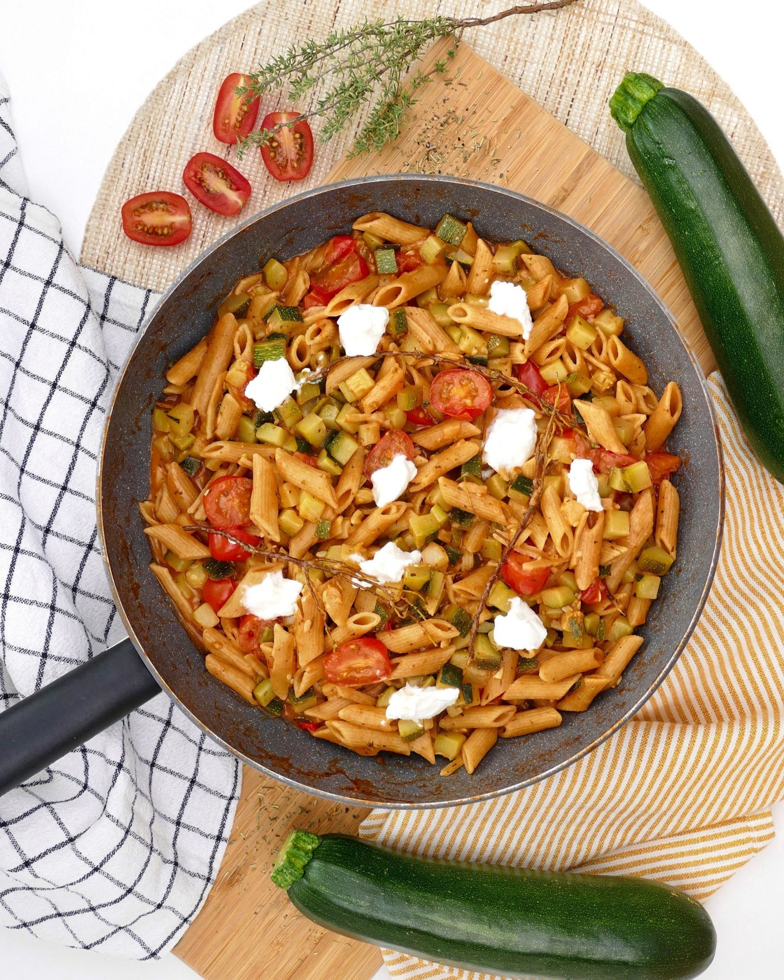 Un plat complet en toute simplicité avec ce one pot pasta aux courgettes et au chèvre, qui met des couleurs dans l’assiette 🍅
