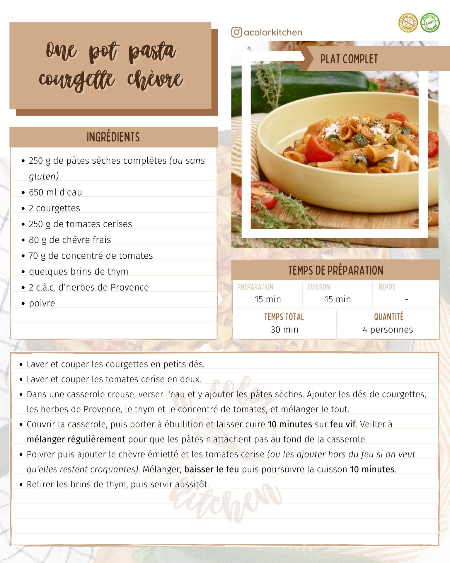 Un plat complet en toute simplicité avec ce one pot pasta aux courgettes et au chèvre, qui met des couleurs dans l’assiette 🍅